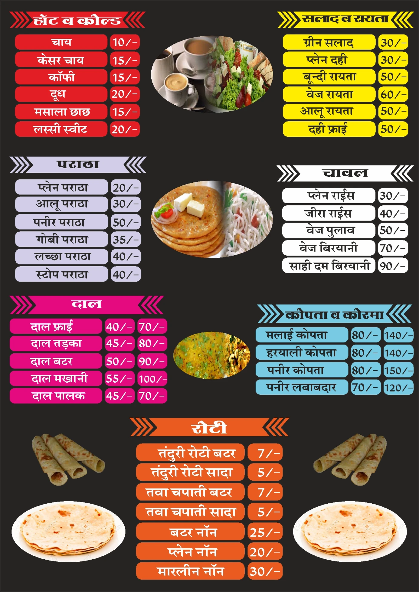 Restaurent Menu Card